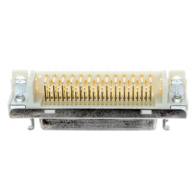 Utilizes a connector style known as Outer Shroud Contacts. Features a connector type acknowledged as Receptacle. Includes contact finish plated at Gold to improve conductivity. Represents the thickness of the contact finish recorded at 30.0µin (0.76µm). Equipped with features categorized as Board Lock, Shielded. Offers flange specifications defined as Housing/Shell (4-40); Latchblocks. Mounting configuration Panel Mount, Through Hole, Right Angle for structural stability. Overall number of positions 50 for switches or mechanical components. Overall rows 2 for setting up matrices or displays. Type of housing Tray for safeguarding or transporting components. Product status Active concerning availability and lifecycle. Classification series for the product or component 102, Mini D Ribbon (MDR). Termination method Solder for electrical or mechanical connections.