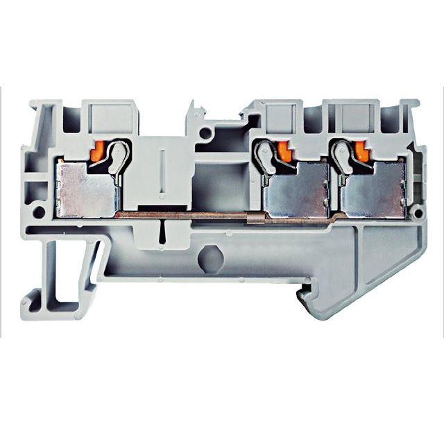 Offered in a shade referred to as Gray to enhance the system's aesthetics. Operates with the current defined by IEC standards set at 32 A. Meets UL current specifications classified as 30 A. Overall levels 1 for multi-tier systems. Overall number of positions 3 for switches or mechanical components. Type of housing Box for safeguarding or transporting components. Product status Active concerning availability and lifecycle. Width of terminal 6.2mm for connector positioning. Type of termination Push In for connector or device. Type classification Feed Through for specifications. IEC standard voltage 800V for compliance. UL certified voltage 600V that has been approved. Wire gauge or AWG range 10-24 AWG for electrical applications. Wire gauge or range in mm² 0.2-4mm² for electrical applications.