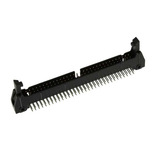 Specifies connector spacing defined as 0.100" (2.54mm) for suitable PCB layout. Features a connector type acknowledged as Header. Offers mating contact finish rated at Gold. Provides a post-contact finish defined by Tin. Emphasizes the thickness of the mating finish denoted as 30.0µin (0.76µm). Specifies the length of the mating contact noted at 0.240" (6.10mm). Incorporates the length of the post contact specified as 0.155" (3.94mm). Constructed from the contact material known as Copper Alloy. Crafted with a contact shape described as Square. Makes use of a contact type known as Male Pin. Sets the ampere rating to 1.75A. Utilizes a fastening type recognized as Latch Lock/Eject Hooks, Long. Equipped with features categorized as Keying Slot, Mounting Flange. Available in Black color of insulation for easy identification. An insulation height of 0.340" (8.64mm) provides sufficient electrical clearance. Constructed with Polycyclohexylenedimethylene Terephthalate (PCT), Polyester, Glass Filled insulation material for durability. Classification UL94 V-0 for adherence to fire safety regulations. Mounting configuration Through Hole, Right Angle for structural stability. Overall number of positions 64 for switches or mechanical components. Occupied positions All for mechanical assembly. Overall rows 2 for setting up matrices or displays. Temperature range -55°C ~ 105°C for environmental conditions impacting thermal efficiency. Type of housing Bulk for safeguarding or transporting components. The distance 0.100" (2.54mm) to achieve correct alignment with the corresponding connector. Product status Active concerning availability and lifecycle. The 0.100" (2.54mm) spacing between rows for proper connector alignment to ensure a precise fit. Classification series for the product or component 3000. Extent of insulation Shrouded - 4 Wall for protective measures. Style variant Board to Board or Cable for design or arrangement. Termination method Solder for electrical or mechanical connections.