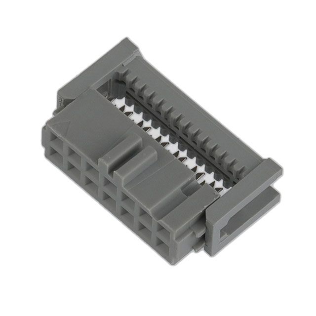 Employs a cable termination method known as IDC. Offered in a shade referred to as Gray to enhance the system's aesthetics. Features a connector type acknowledged as Receptacle. Includes contact finish plated at Gold to improve conductivity. Represents the thickness of the contact finish recorded at 30.0µin (0.76µm). Makes use of a contact type known as Female Socket. Equipped with features categorized as Feed Through, Polarizing Key. Mounting configuration Free Hanging (In-Line) for structural stability. Overall number of positions 14 for switches or mechanical components. Overall rows 2 for setting up matrices or displays. Type of housing Bulk for safeguarding or transporting components. Distance 0.100" (2.54mm) for arranging components or aligning connectors. Product status Active concerning availability and lifecycle. The 0.100" (2.54mm) spacing between rows for connectors or PCB layout. Classification series for the product or component 891. Size of wire gauge 26-28 AWG according to electrical standards. Wire type Ribbon Cable for electrical or signal applications.