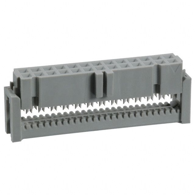 Employs a cable termination method known as IDC. Offered in a shade referred to as Gray to enhance the system's aesthetics. Features a connector type acknowledged as Receptacle. Includes contact finish plated at Gold to improve conductivity. Represents the thickness of the contact finish recorded at 30.0µin (0.76µm). Makes use of a contact type known as Female Socket. Equipped with features categorized as Feed Through, Polarizing Key. Mounting configuration Free Hanging (In-Line) for structural stability. Overall number of positions 26 for switches or mechanical components. Overall rows 2 for setting up matrices or displays. Type of housing Bulk for safeguarding or transporting components. Distance 0.100" (2.54mm) for arranging components or aligning connectors. Product status Active concerning availability and lifecycle. The 0.100" (2.54mm) spacing between rows for connectors or PCB layout. Classification series for the product or component 891. Size of wire gauge 26-28 AWG according to electrical standards. Wire type Ribbon Cable for electrical or signal applications.