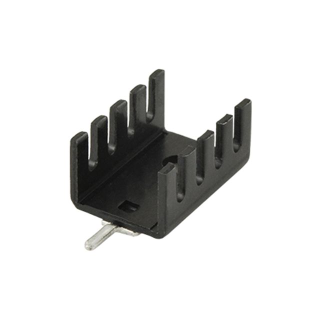 Fastened using a PC Pin method for dependable placement. Records the fin height at 0.748" (19.00mm). Overall length 0.520" (13.20mm) for size indication. Type of construction material Aluminum for durability and efficiency. Coating Black Anodized for safeguarding and aesthetic enhancement. Type of housing Bag for safeguarding or transporting components. Layout of the thermal management package TO-220 aimed at cooling. Power dissipation at increased temperature 2.6W @ 75°C for device longevity. Product status Active concerning availability and lifecycle. Classification series for the product or component HSS. Shape Rectangular, Fins for the part or device. Thermal resistance with fan assistance 10.68°C/W @ 200 LFM for enhanced cooling efficiency. Thermal resistance in natural airflow 28.85°C/W for heat regulation. Type classification Board Level, Vertical for specifications. Horizontal width measurement 0.250" (6.35mm).