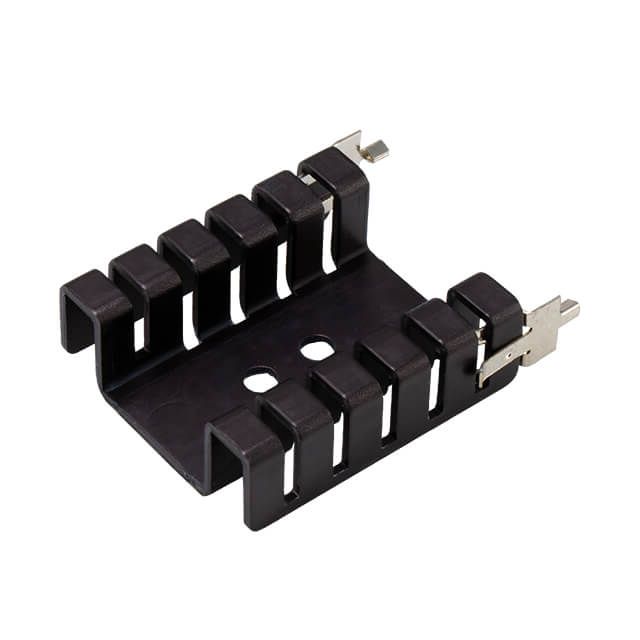 Fastened using a Bolt On and PC Pin method for dependable placement. Records the fin height at 0.470" (11.94mm). Overall length 1.640" (41.66mm) for size indication. Type of construction material Aluminum Alloy for durability and efficiency. Coating Black Anodized for safeguarding and aesthetic enhancement. Type of housing Box for safeguarding or transporting components. Layout of the thermal management package TO-220 aimed at cooling. Power dissipation at increased temperature 5.5W @ 75°C for device longevity. Product status Active concerning availability and lifecycle. Classification series for the product or component HSS. Shape Rectangular for the part or device. Thermal resistance with fan assistance 5.60°C/W @ 200 LFM for enhanced cooling efficiency. Thermal resistance in natural airflow 13.67°C/W for heat regulation. Type classification Board Level, Vertical for specifications. Horizontal width measurement 1.300" (33.02mm).
