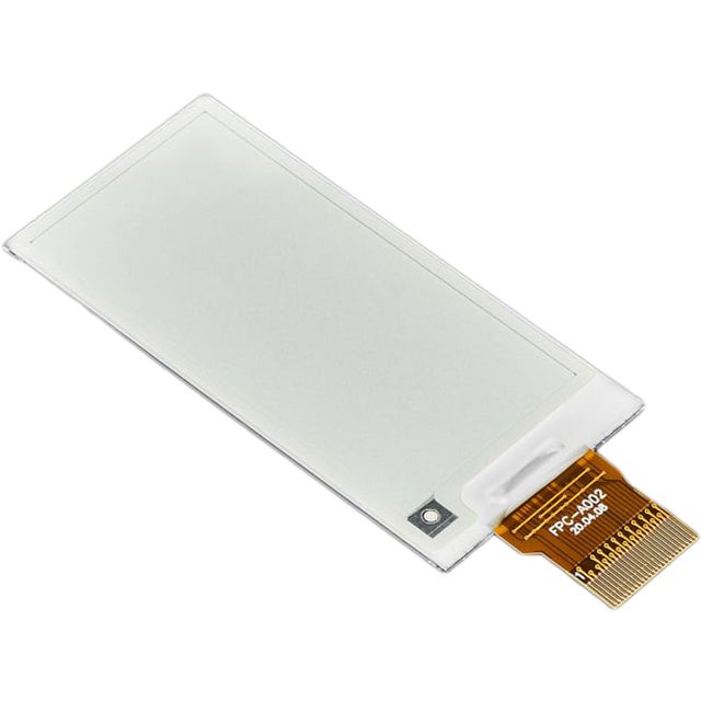 Features a background color of White for better visibility. Utilizes a Without Backlight backlight for improved readability. Constructed with a controller classification referred to as SSD1680Z. Indicates a diagonal screen size rated at 2.13" (54.10mm). Operates in a display mode defined by Reflective. Features a display type recognized as TFT - Electronic Paper Display (EPD). Displays the count of dot pixels measured at 250 x 122. Provides Black depth of color for lively display output. Employs Black light type for maximum brightness. Designed for I2C, Serial, SPI ease of use and user interaction. Type of housing Bulk for safeguarding or transporting components. Product status Active concerning availability and lifecycle. Display capabilities featuring touch input Non-Touch. Visible section 49.35mm W x 24.50mm H for displays or optical devices.