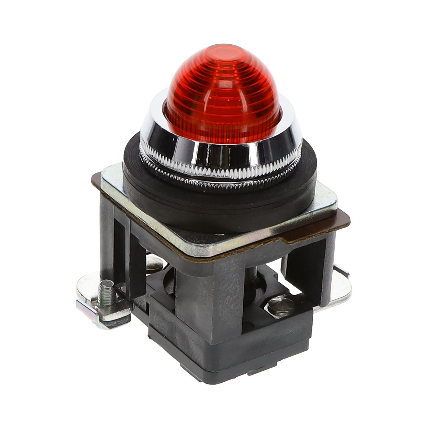 Rated with IP IP65, NEMA 4X, 12 to safeguard against dust and moisture penetration. Bulb emits Red color for efficient lighting. Lens configuration Round with Domed Top combining utility with aesthetic appeal. Type of housing Bulk for safeguarding or transporting components. Product status Active concerning availability and lifecycle. Criteria AC/DC for electrical, mechanical, or environmental performance. Type classification LED for specifications. The voltage specification 24V for electrical parameters.