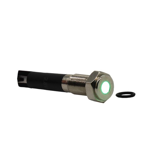 Assesses resistance at forward current Tariff may apply if shipping to the United States for LED or diode testing. Supports a current specification of 30mA for dependable electrical operation. Facilitates a maximum output current level set as 30mA. Rated with IP IP67 to safeguard against dust and moisture penetration. Bulb emits Green color for efficient lighting. Lens color Green for improved visual clarity or signaling. Lens dimensions 3.00mm Dia for proper fitting and application. Lens configuration Round with Flat Top combining utility with aesthetic appeal. Lens transparency Diffused ensuring maximum light passage. Millicandela measurement 170mcd for LED or light intensity. Type of housing Tray for safeguarding or transporting components. Specifications of the cutout 0.24" (6.00mm) for accurate mounting. Shape of the cutout Round for installation guidelines. Product status Active concerning availability and lifecycle. Criteria DC for electrical, mechanical, or environmental performance. Classification series for the product or component IN. The classification for import duties Tariff may apply if shipping to the United States related to import and export transactions. Type of termination Quick Connect - 0.256" (6.50mm) for connector or device. Type classification LED for specifications. Maximum Vce(on) at Vge Tariff may apply if shipping to the United States for transistor specifications. Viewing angle 145° for monitors. The voltage specification 12V for electrical parameters. Wavelength at peak intensity 516nm for optical devices.