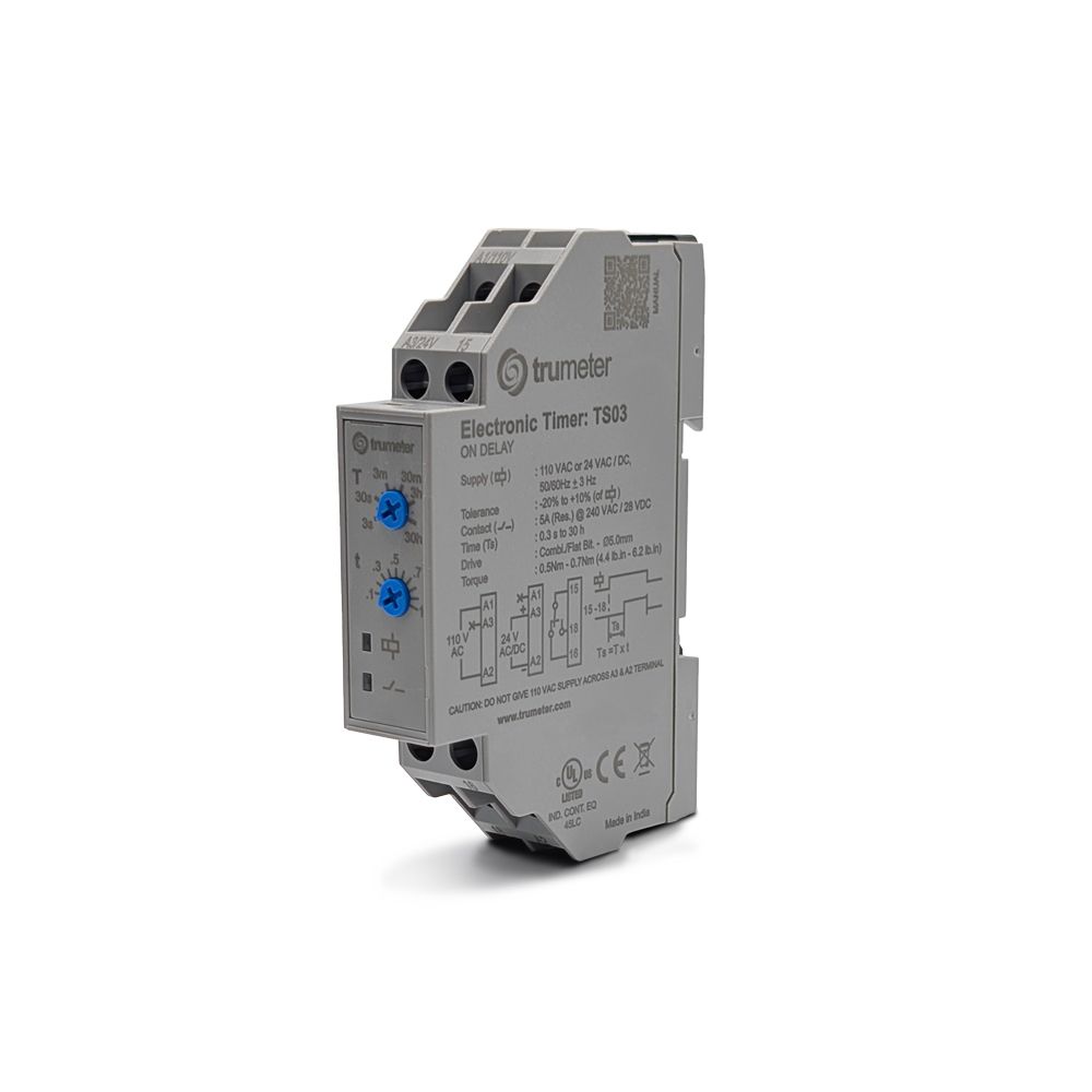 Configured for circuit type described as SPDT (1 Form C). Offers a contact rating at the voltage level of 5A @ 240VAC. Reflects the time delay noted at 0.3 Sec ~ 30 Hrs. Engineered with On-Delay features for versatile component usage. Mounting configuration DIN Rail for structural stability. Product status Active concerning availability and lifecycle. Configuration of relay Mechanical Relay for controlling electrical circuits. Classification series for the product or component TS. Voltage requirement 110VAC for electrical specifications. Type of termination Screw Terminal for connector or device. Timing calibration method DIP Switches for setup. Timing activation technique Input Voltage for management systems. Voltage supply 110VAC for device operation.