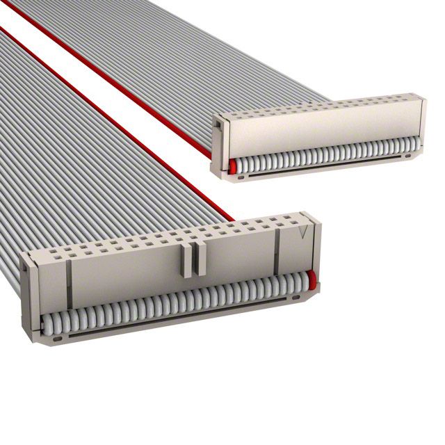 Employs a cable termination method known as IDC. Offered in a shade referred to as Gray, Ribbon to enhance the system's aesthetics. Features a connector type acknowledged as Socket to Socket. Includes contact finish plated at Gold to improve conductivity. Represents the thickness of the contact finish recorded at 30.0µin (0.76µm). Equipped with features categorized as Polarizing Key, Strain Relief. Overall length 1.50' (457.20mm) for size indication. Overall number of positions 34 for switches or mechanical components. Overall rows 2 for setting up matrices or displays. Type of housing Bulk for safeguarding or transporting components. Spacing between cables 0.050" (1.27mm) for conductor arrangement. The gap between connectors 0.100" (2.54mm) to ensure a reliable connection. Product status Active concerning availability and lifecycle. Shielding Unshielded for EMI/RFI protection.