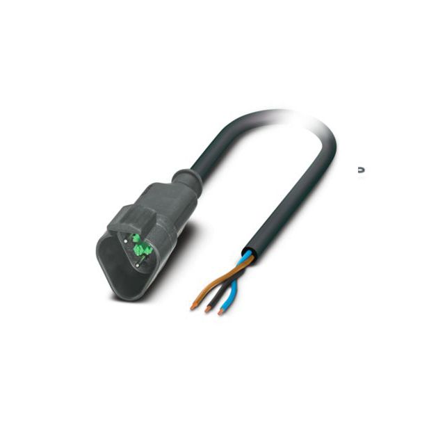 Employs a cable termination method known as Crimp. Offered in a shade referred to as Black, Individual (Round) to enhance the system's aesthetics. Features a connector type acknowledged as Plug to Cable. Includes contact finish plated at Nickel to improve conductivity. Overall length 4.92' (1.50m) for size indication. Overall number of positions 3 for switches or mechanical components. Overall rows 2 for setting up matrices or displays. Type of housing Bulk for safeguarding or transporting components. Product status Active concerning availability and lifecycle. Shielding Unshielded for EMI/RFI protection.