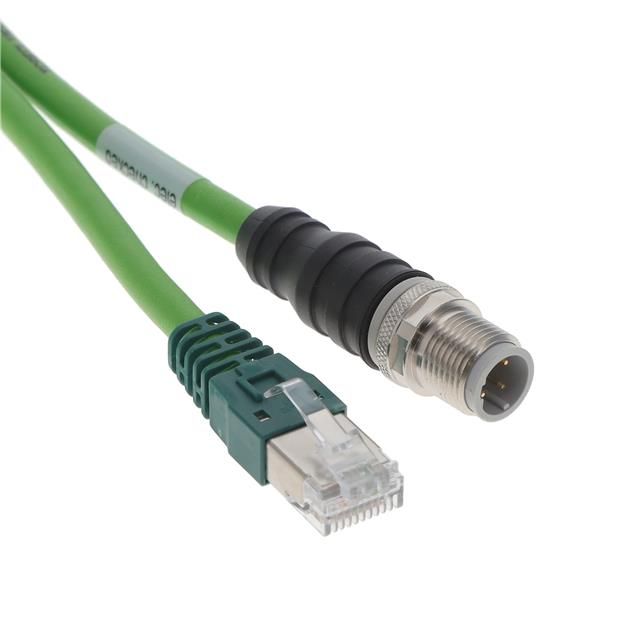 Classified under cable type Round for suitable use. Offered in a shade referred to as Green to enhance the system's aesthetics. Features a connector type acknowledged as Circular 04 pos Male to RJ45, 8p8c. Overall length 3.28' (1.00m) for size indication. Type of housing Box for safeguarding or transporting components. Product status Active concerning availability and lifecycle. Shielding Unshielded for EMI/RFI protection.