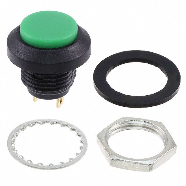 Features labels marked as No Marking for easy identification. Incorporates a Round, Button actuator type to fulfill the desired function. Configured for circuit type described as SPST-NO. Made with an actuator or cap color labeled as Green for visual differentiation. Sets the ampere rating to 125mA (AC), 100mA (DC). Rated with IP IP67 - Dust Tight, Waterproof to safeguard against dust and moisture penetration. Mounting configuration Panel Mount, Front for structural stability. Temperature range -25°C ~ 85°C for environmental conditions impacting thermal efficiency. Type of housing Bulk for safeguarding or transporting components. Specifications of the cutout Circular - 12.00mm Dia for accurate mounting. Product status Active concerning availability and lifecycle. Classification series for the product or component GPB. Modification in operation mode Off-Mom for electrical optimization. Type of termination Solder Lug for connector or device. Type classification Standard for specifications. The highest AC voltage specification 125 V for the device. The highest DC voltage specification 50 V for components.